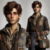 A young man with tousled chestnut hair and piercing hazel eyes that seem to see beyond the ordinary. Clad in patched garments adorned with mysterious symbols, his attire reflects the faded grandeur of long-lost factions. Morgan carries a small satchel filled with trinkets and ancient relics, perpetually shrouded in a slight aroma of aged parchment and incense. His demeanor is calm and composed like a seasoned merchant of old, even for his youthful years.