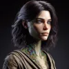 Elira is a slender woman of average height, with pale skin that seldom sees the sun of her home planet, Obscura Prime. Her long, dark hair cascades down her back, often tangled with bits of the vegetation she adores. Her eyes, a translucent blue, reflect a deep-seated anxiety, constantly darting as if to search for unseen threats. She wears simple, earth-toned robes that cloak her thin frame, often smudged with dirt and the organic matter of her trade.