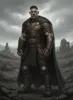 A young Half-Orc male with rugged features, muscular build, and a piercing gaze. His skin is a muted shade of gray-green, with calloused hands and numerous scars snaking across his arms. Grunk's hair is a short, unkempt mane of dark wavy locks, and his lower tusks jut out prominently, hinting at his orcish heritage. He often wears worn leather armor with a dark cloak that seems to swallow the light around it.