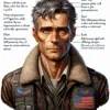 Ellis Rhentworth Crenshaw is a human male of 47 years, possessing gentle features softened by years of enduring the harsh environment of Furyan. His graying hair frames a weather-beaten face with deep-set, kind eyes that speak volumes of patience and empathy. His frame is lean yet sturdy, having spent endless hours in the cloistered confines of a cockpit. Dressed in a patched leather flight jacket and worn trousers, every item he wears seems to have a history etched into its fibers.