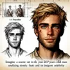 A 21-year-old human male with sandy blonde hair that’s perpetually tousled by winds and recklessness. His eyes are a stormy gray, filled with sparks of ambition, hinting at both daring and danger. Though youthful, his face is worn with the lines of travels and struggles, emanating an air of someone wise beyond his years. His tall and lean body bears the marks of his many travels through treacherous paths — a fresh scar across his cheek being the most recent.