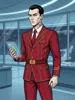 Aelen possesses a sharp, angular face with pale, almost translucently clean skin that speaks of a life spent in filtered station air. He keeps his jet-black hair slicked back with military precision. He wears a bespoke, crimson officer's uniform, but it is tailored like a high-end corporate suit, featuring gold pinstripes and the Red Sun Dominion logo heavily branded on the lapels, cuffs, and belt buckle. His most disturbing feature is a tattoo of the Dominion's Corporate Charter running vertically up the left side of his neck, disappearing behind his ear—a permanent pledge of allegiance in black ink. He is rarely seen without a datapad in one hand and a chronometer in the other.