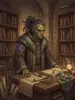 Master Alerius stands at a modest height for a Simic Hybrid, his green skin mottled with patches of gray as he ages. His face is dominated by piercing yellow eyes that seem to hold a glint of malice even when he's merely observing. He keeps his shoulder-length hair tied back in a ponytail, opting not to reveal the tentacle-like appendages that would mark him as Simic Hybrid more prominently. His robes, though plain and earthy in color, are crafted from the finest materials known to the Arcanum Sanctorum, with intricate magical symbols woven into their fabric.